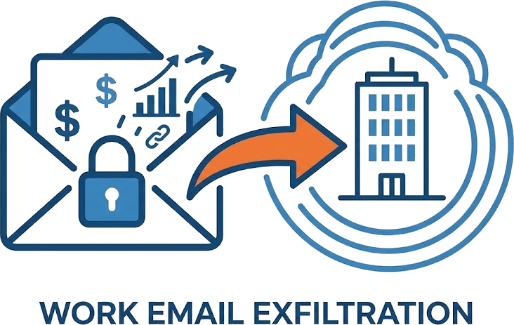 Forwards confidential work emails (financials, M&A, compensation)
